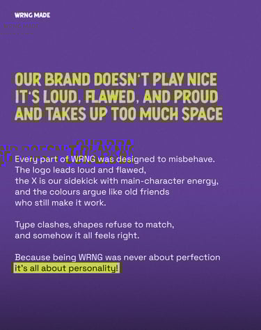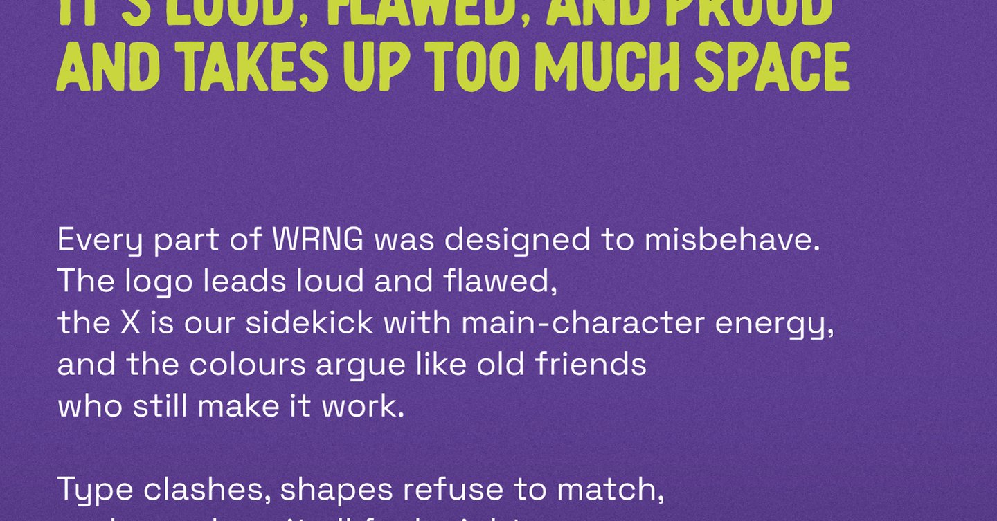 Created for a new generation of confident misfits who value honesty over polish, WRNG speaks to those who find beauty in what feels real. Every element, from typography and colour to imagery and interaction, embraces contradiction: raw yet refined, loud yet minimal, wrong yet irresistibly right.
